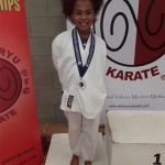 Alexandria, who is becoming an old hand at competitions probably had the worst decision of the day losing 2-1 on flags in the kata to the eventual silver medalist, however she did redeem herself in the kumite (fighting) which upholds her record of medaling in this competitions every time she has entered (3 so far), but with a grading looming next year she will be moving up a section.